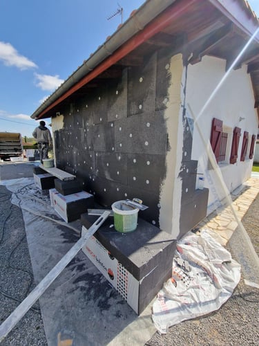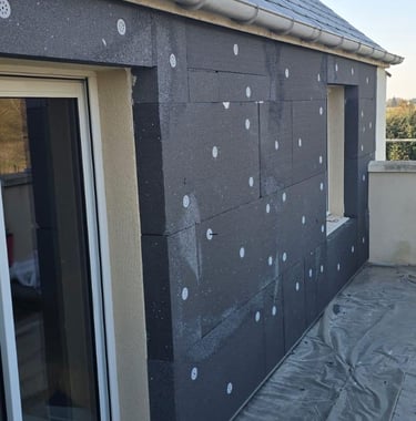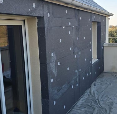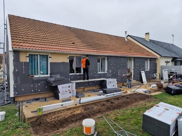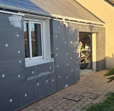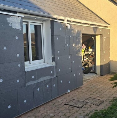 Chantier Rénovation d'Ampleur : Isolation extérieure + Isolation sous-sol en Tetris. Dept : 49260
