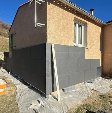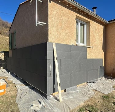 Chantier Rénovation d'Ampleur : Isolation extérieure + Isolation garage. Dept : 05300